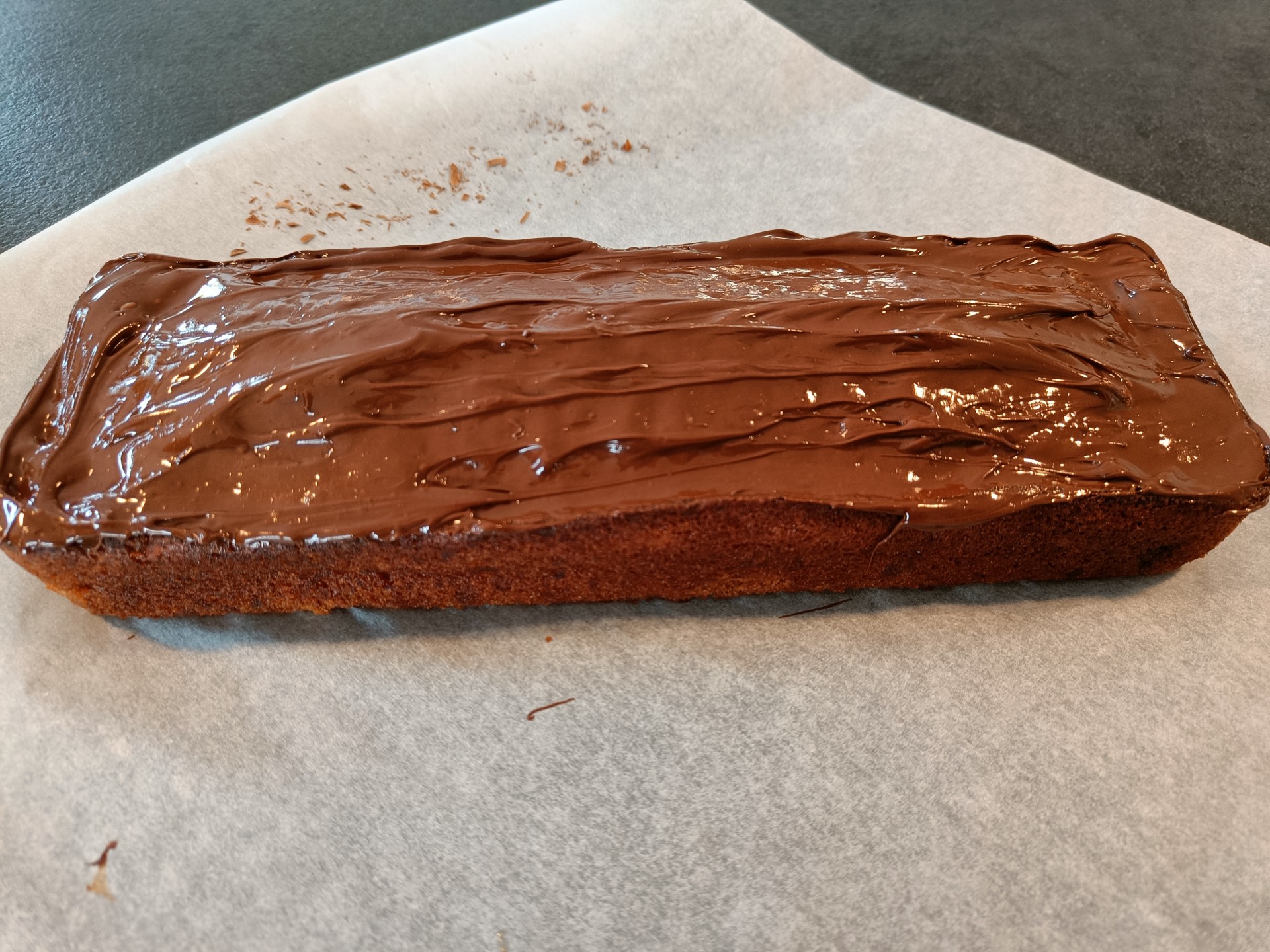 Temperer chokoladen, og overtræk kagen.