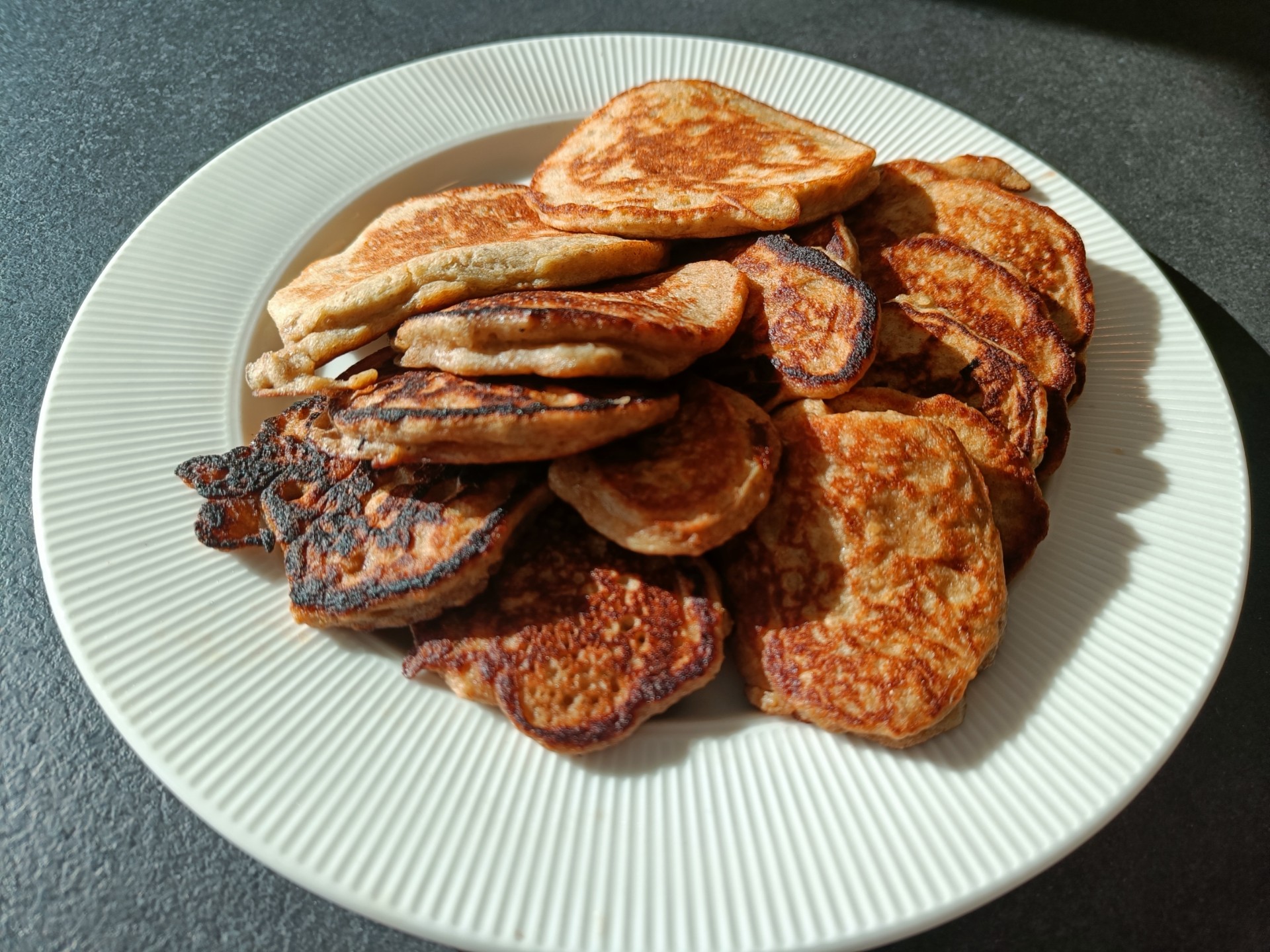 Kom pandekagedejen på i klatter med en spiseske. og vend dem når de er stegt på den ene side.